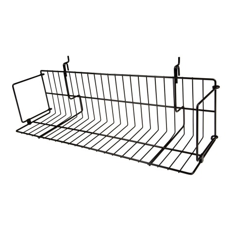 works with gridwall, slatwall, slatgrid or pegboard - 1/8" wire – measures 24"x6 1/2"x6 1/2" – available in black or white – toll free 1-866-400-1644